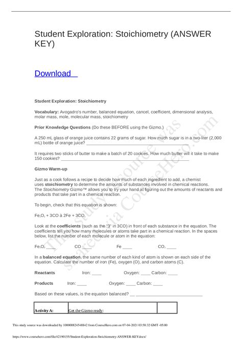 Download student exploration stoichiometry key Library Binding ManyBooks